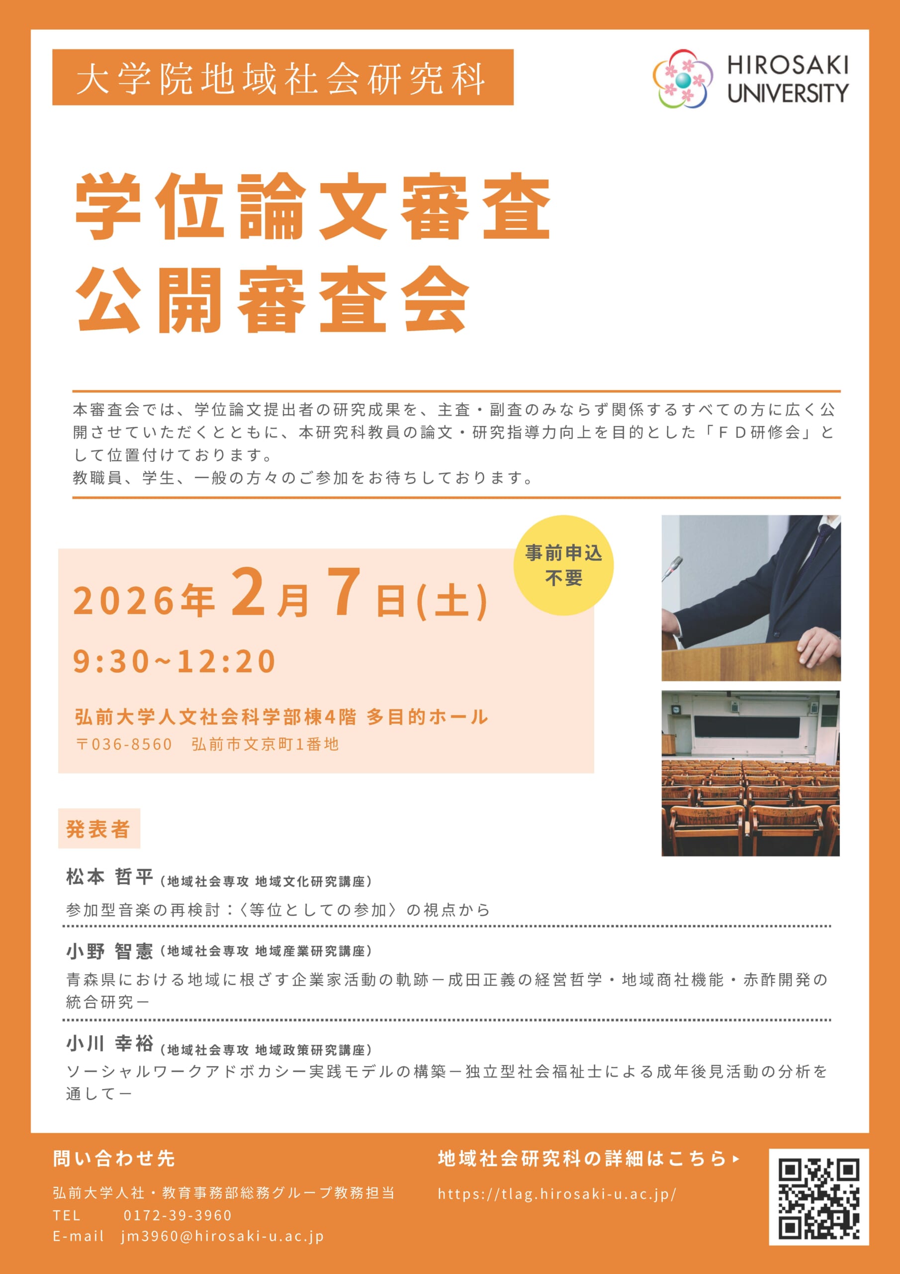 大学院地域社会研究科の学位論文に係る公開審査会を開催します。